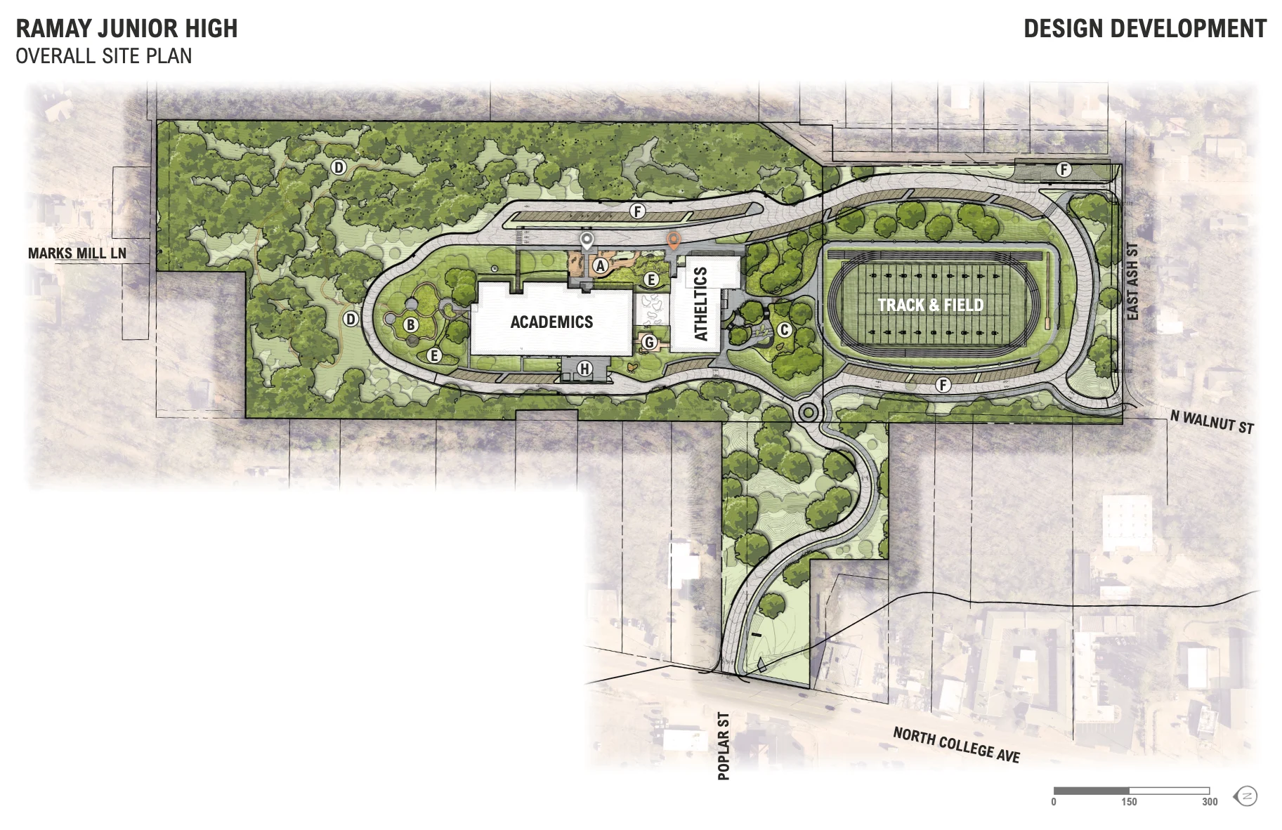 The Fayetteville Public School Board is advancing plans to build a “New” Ramay Junior High School, east of the North College/Poplar intersection. The site location is on an unstable, steeply-sloping hillside, fully covered by an Urban Forest of healthy hundred year-old native trees.
